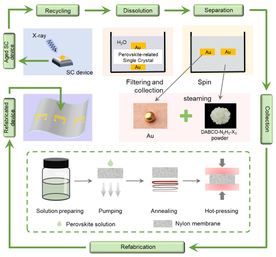 卤化物钙钛矿由于出色的光电特性,在X射线检测中显示出巨大的潜力,但是寻找一种经济有效且可持续发展的方法来处理报废器件仍然具有挑战性。