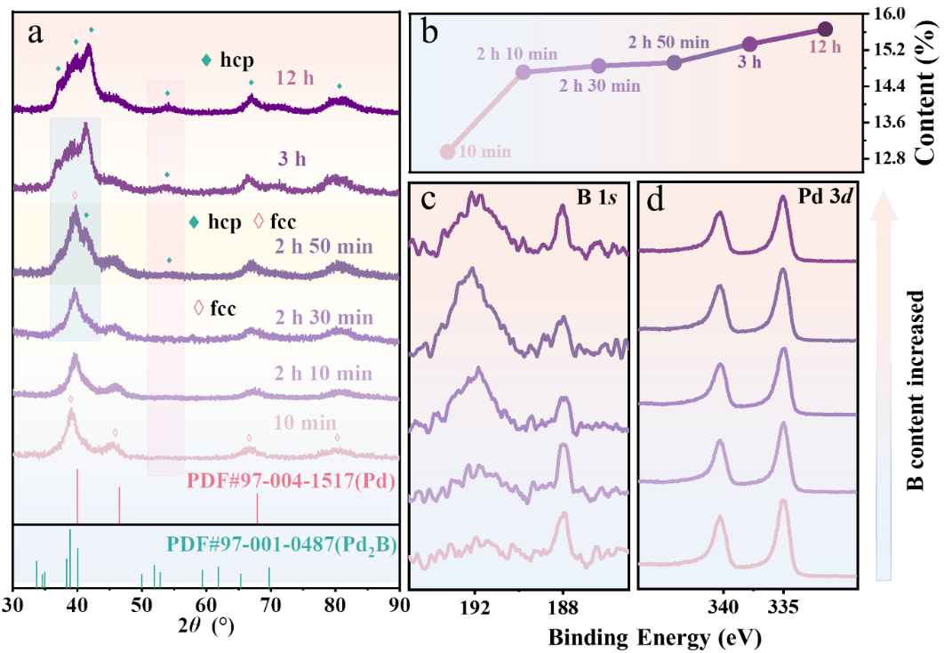 钯-硼纳米花晶相转变及硼含量表征