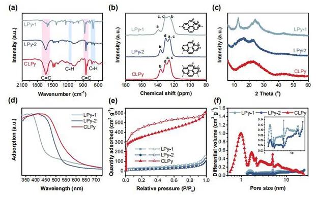 近日,我院蒋加兴教授与美国俄勒冈州立大学纪秀磊教授(共同通讯作者)发现了一系列不同连接结构和电子结构的聚芘作为水系双离子锌电池(AZDIBs)的有机正极材料。研究表明,可以通过改变聚芘结构中芘单元上的连接位点调控其电子结构,进而实现对其氧化还原活性的调节。通过1,3,6,8-位点连接的聚芘CLPy具有高度离域的HOMO分布、高的HOMO能级、窄的带隙和高的表面积的特点,因而能够实现高的Cl-存储容量(180 mAh g-1),远高于其它两个线性聚芘LPy-1(24 mAh g-1)和LPy-2(44 mAh g-1)。更重要的是,CLPy具有十分优异的循环稳定性,在50 mA g-1的电流下循环800次后,容量保持率为97.4%,即使在3 A g-1的电流下循环38000次后仍能实现96.4%的容量保持率。此外,CLPy还具有低的自放电速率的特点,在放置28天后大约还有90%的容量保持率,其优异的电化学性能表明,CLPy是一种极具发展潜力的高性能AZDIBs正极材料。相关研究成果以“Tailoring the Linking Patterns of Polypyrene Cathodes for High-Performance Aqueous Zn Dual-Ion Batteries ”为题发表在Energy & Environmental Science (影响因子:30.289)上。论文第一作者为我院青年教师张崇博士。
