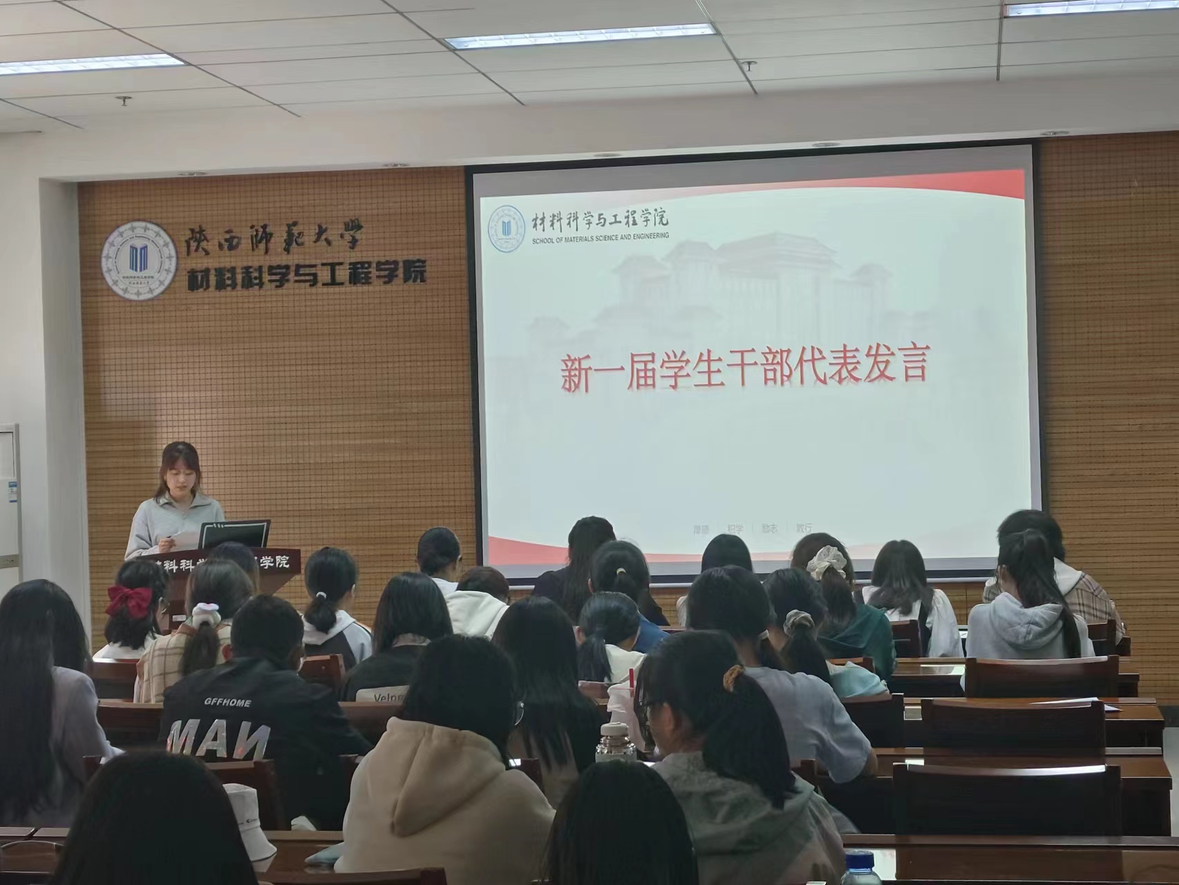 云梦竹代表新一届团委、学生会干部发言,她介绍了新一届团委、学生会的工作计划,表明了带领组织成员在新的一年不负所托,继续前行的决心。