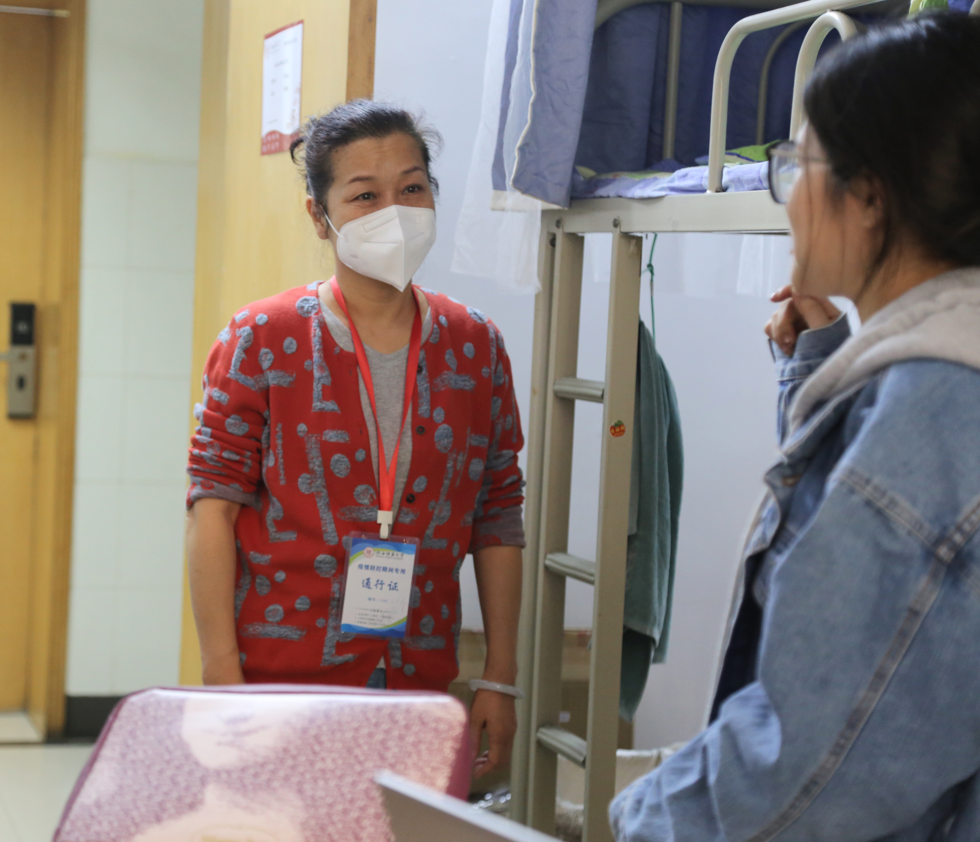 走访中,靳春泓与新生进行亲切交流,询问大家来校感受和生活情况,嘱咐他们注意宿舍卫生与安全,营造良好的住宿与学习环境。同时,希望同学们按照学院防疫工作通知要求,在校期间加强自我防护,做好疫情防疫工作,提高安全防范意识,遇到问题第一时间联系辅导员。她勉励新生尽快调整好状态,以积极进取的心态迎接新学期的学习和生活。
