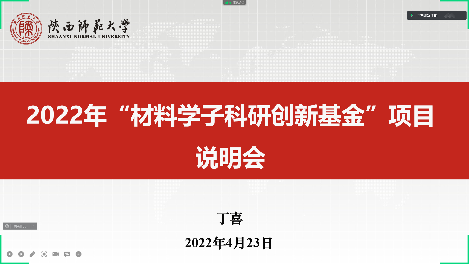 为将科研育人、实践育人落到实处,提升我院学生科研创新意识和能力,帮助我院学生更好的申报2022年“材料学子科研创新基金”,4月23日晚,学院召开了2022年“材料学子科研创新基金”项目说明会,说明会由本科生辅导员丁喜主讲,2021、2020级全体本科生线上参会。