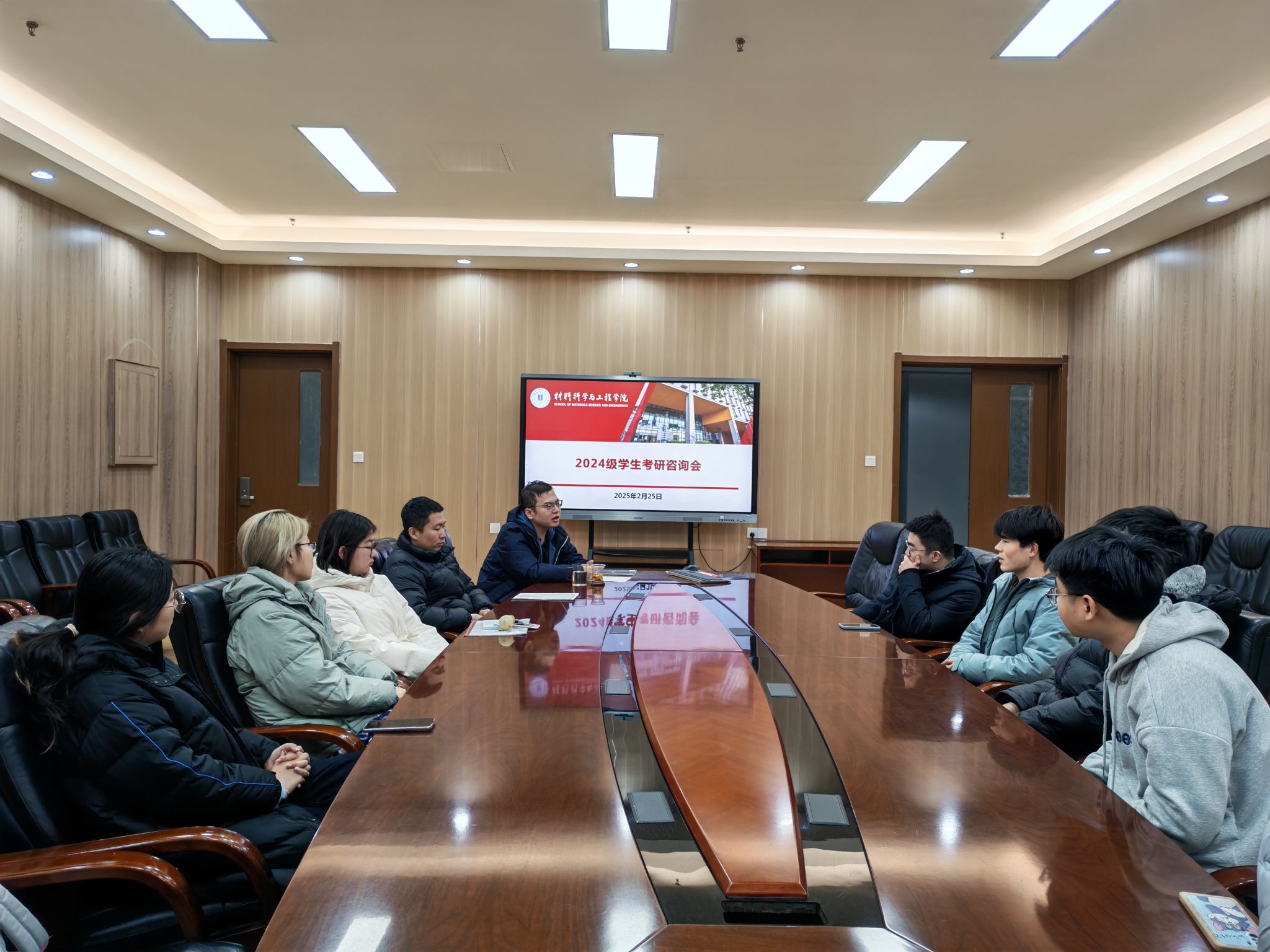 考研成绩与国家线公布后,为助力考研学生合理规划复试准备及调剂选择等关键事宜,jcjc5500公海贵宾会第一时间举办了考研学生咨询会,毕业班辅导员丁喜、毕业班班主任艾轩老师与牛天启老师共同出席会议,众多考研学生积极参与。