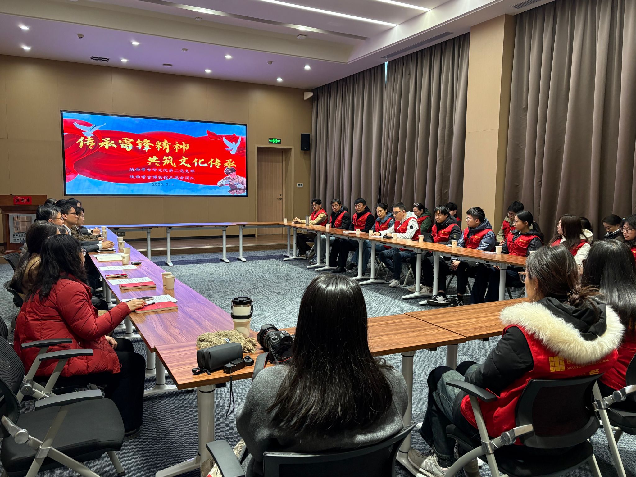 活动在陕西考古博物馆公众考古中心正式启动。志愿者们首先参加了雷锋精神学习座谈会,与博物馆的党员干部进行了深入交流。党员干部们分享了文物保护的实际案例,进一步强化了志愿者们对文物保护工作的使命感和责任感。随后,志愿者们参观了文物保护修复实验室,近距离了解了文物修复的技术与过程,深刻体会到文物保护工作的复杂性与重要性。