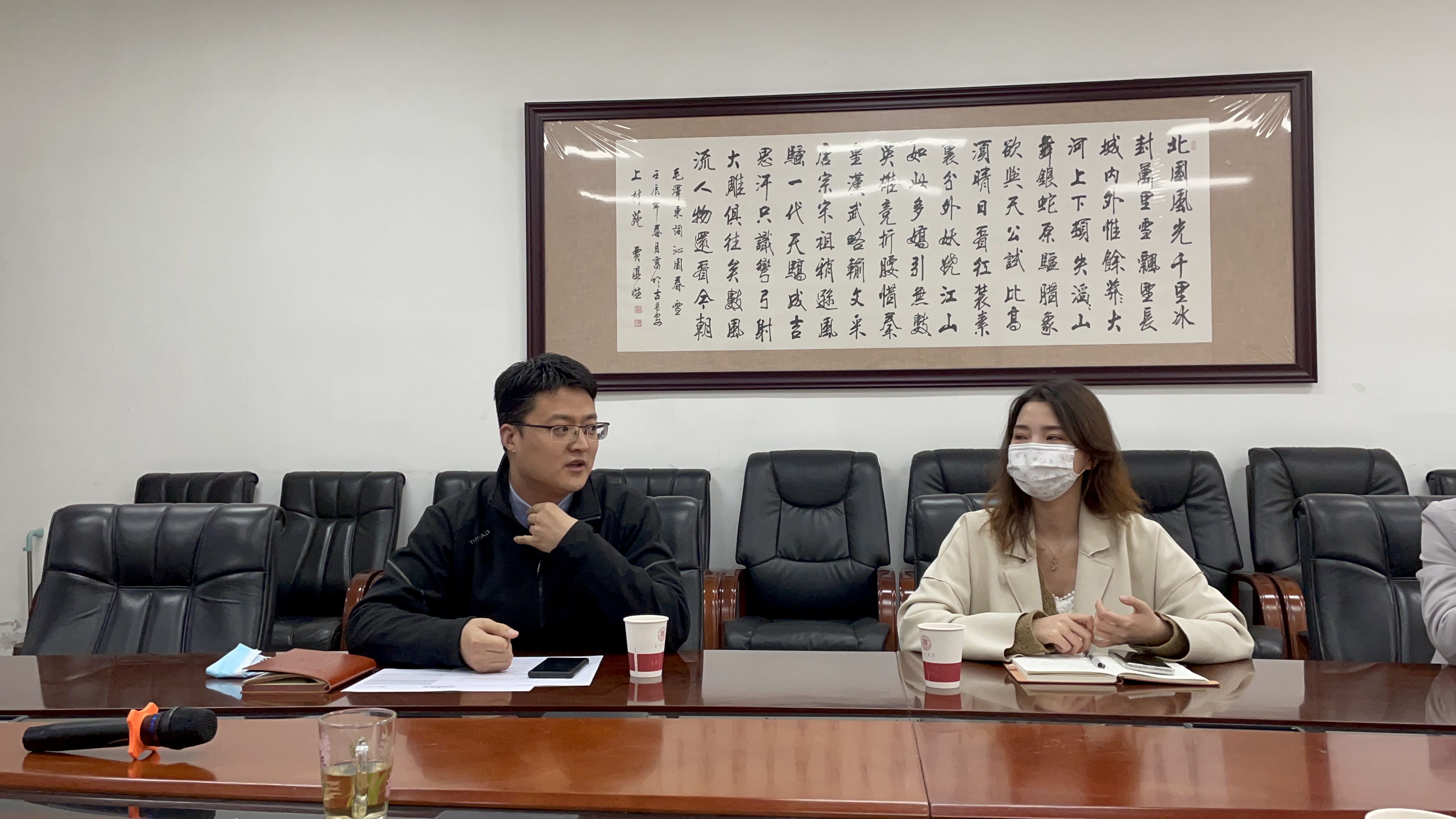 靳春泓对王阳阳的到访表示欢迎,对于学院当前毕业生就业工作的整体推进情况进行了简要说明。接着,兼职辅导员马文华对我院2022届毕业生就业工作进度及具体措施做了详细汇报。学院始终坚持“人人都是就业工作者”的工作理念,落实“导师责任制”,形成全员抓就业、促就业的“大就业”工作格局。随后,专职辅导员丁喜对学院近几年毕业生的整体就业情况及创新创业教育发展作了总体汇报。