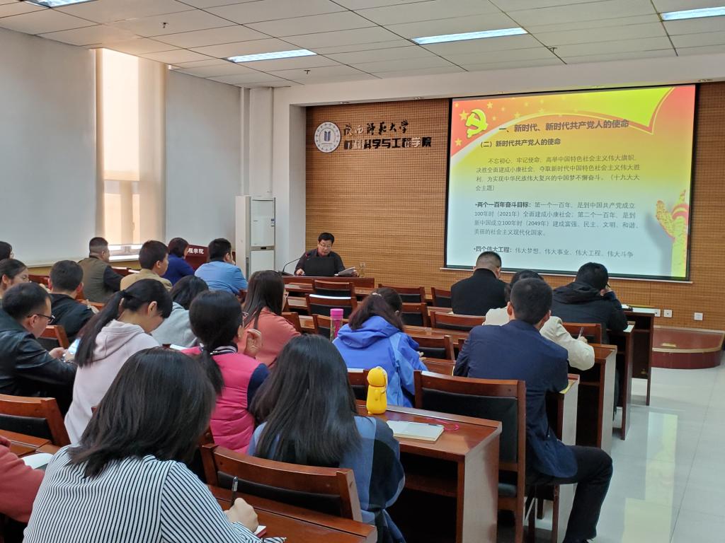 学院“不忘初心、牢记使命”主题教育专题党课于10月16日下午在致知楼2307报告厅举行。学院党总支书记杨千社以“新时代背景下如何发挥基层党建组织的战斗堡垒作用”为题,给学院教工党支部和博士生党支部的党员讲授了专题党课。