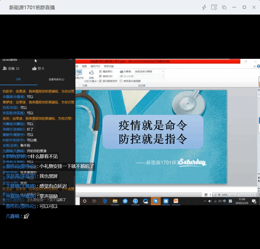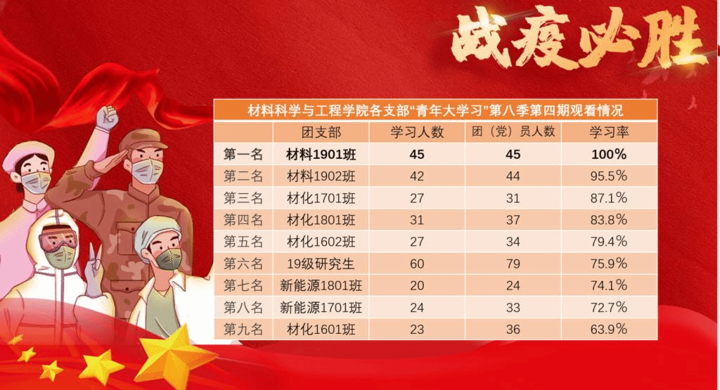 材料2019级1班和2班团支部的同学为支持武汉抗击疫情而准备了书法作品和美术作品,团干部将其整理录制成小视频。丰富的形式,温暖的内容让参加团日活动的同学感觉自己仿佛就在抗击疫情的战场,感受着来自祖国四面八方的支持和祝福。