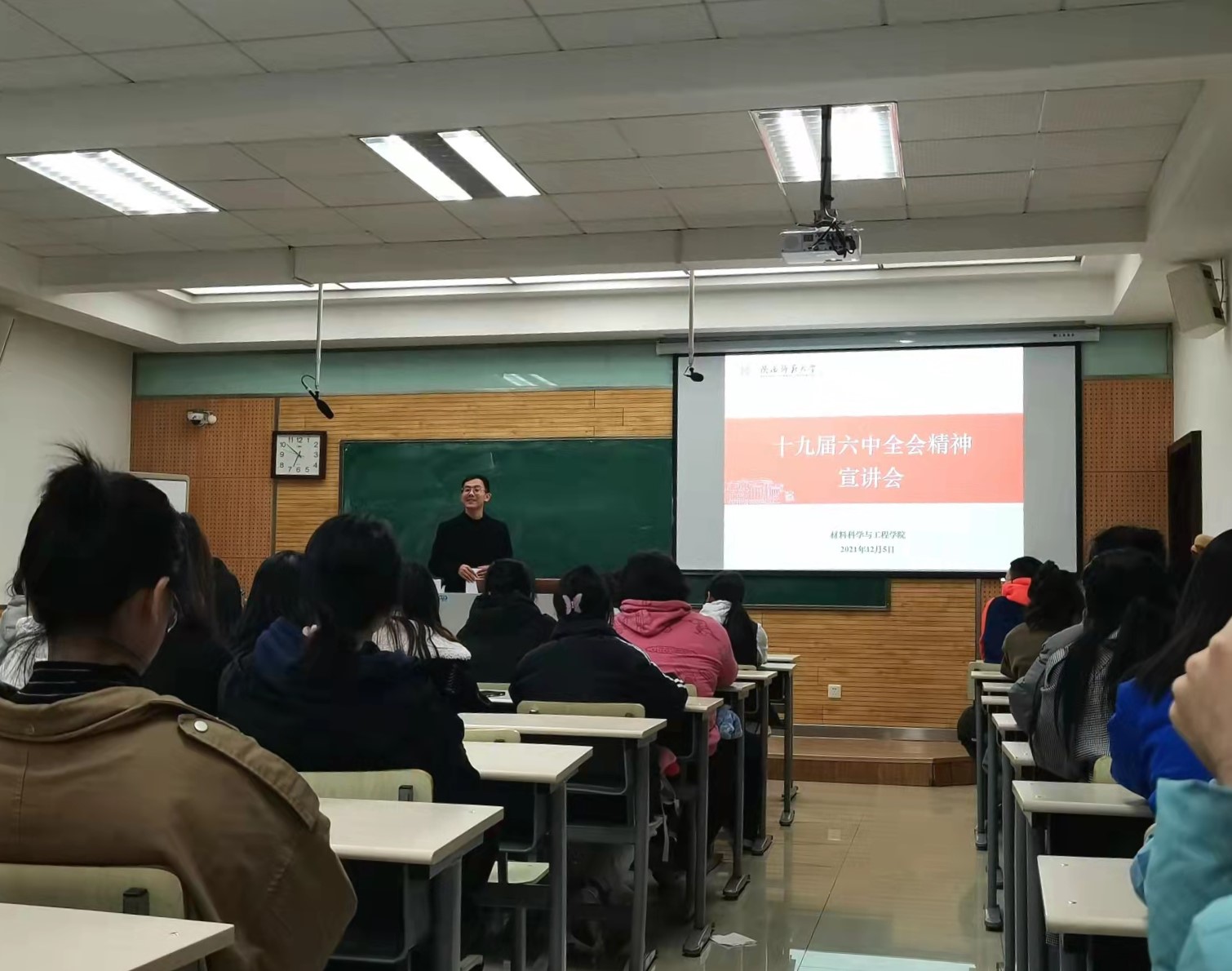 12月5日晚,学院本科生党支部书记、本科生辅导员丁喜为学院雁塔校区全体学生宣讲党的十九届六中全会精神,学院雁塔校区全体学生参加了宣讲会。