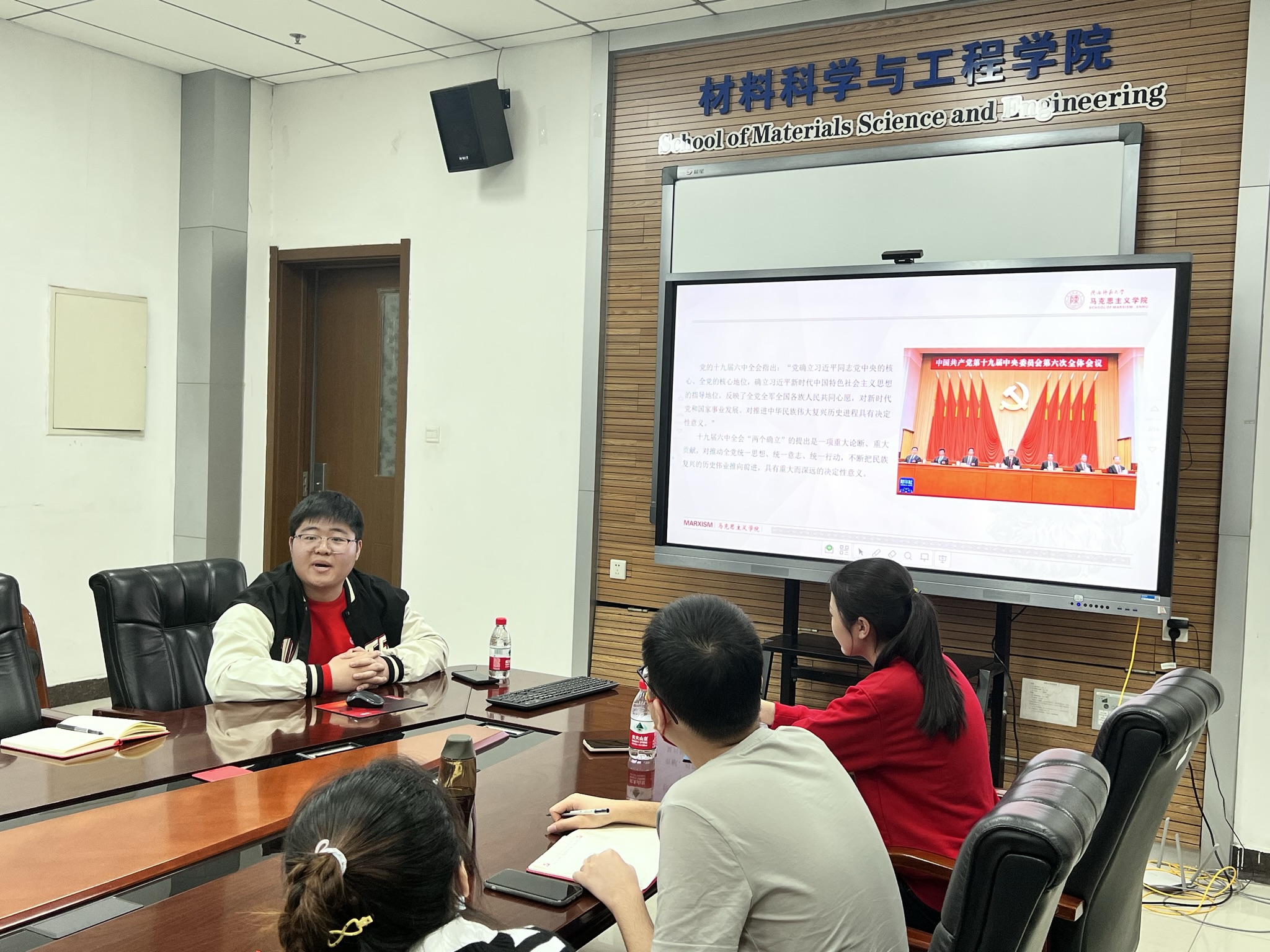 4月23日晚,我院邀请马克思主义学院“新时代大学生理论宣讲团”孙少帅、赵颖两位宣讲员为研究生第三党支部全体党员同志开展主题党课宣讲,活动在致知楼2313会议室举行。