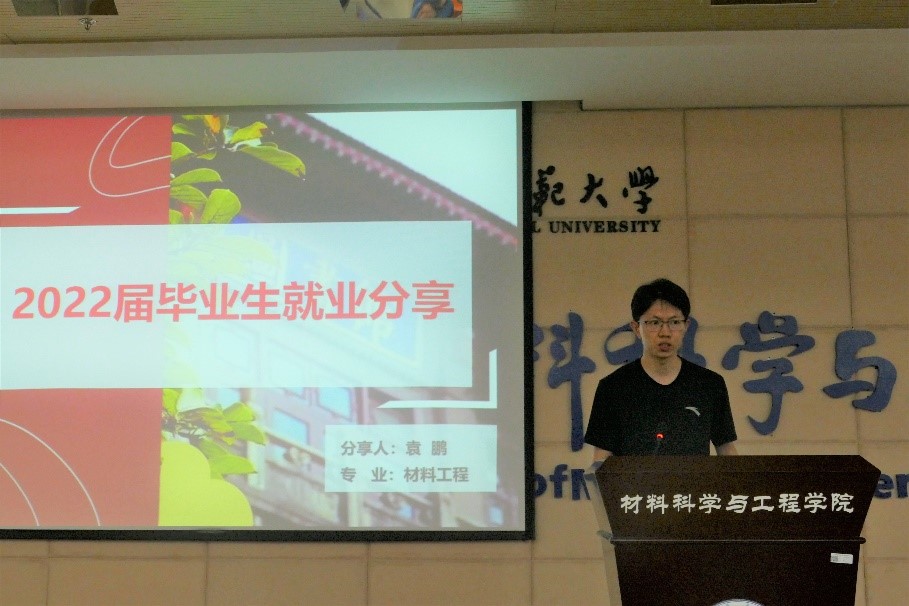 为落实党中央、国务院“稳就业”“保就业”的决策部署,帮助我院学生对材料学科就业前景和就业方向有明确的认识,做好求职和升学准备,6月14日下午,研究生第一党支部在致知楼2712举办了“党建话就业”交流分享会,五位优秀毕业生从不同方向,向二年级研究生分享了就业和升学的经历和经验。