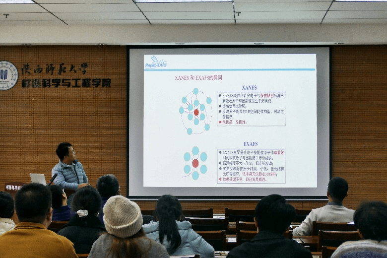柳守杰副教授以“桌面XAS/XES谱仪在材料中的发展及应用”为题,系统介绍了X射线谱学技术的发展历程及其在能源材料研究中的重要作用。他指出,台式X射线谱学技术作为同步辐射技术的重要延伸,已成为解析材料局域原子结构与电子结构的关键手段,对于阐明催化反应机理、构建催化剂“构效关系”具有不可替代的价值。报告重点阐述了X射线吸收精细结构谱(XAFS)和X射线发射谱(XES)等技术的基本原理与应用优势,以及该类技术在获得材料的结构信息(如键长、配位数、配位原子类型),氧化态、自旋状态等电子结构信息的独特优势。此外,柳守杰副教授还介绍了近年来基于实验室光源的台式XAFS/XES仪器的发展情况。
