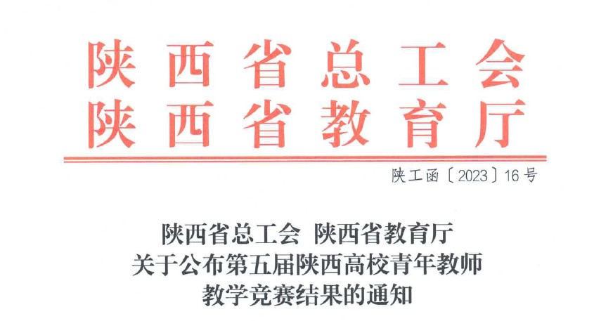 为大力弘扬劳模精神、劳动精神、工匠精神,广泛深入持续开展好劳动和技能竞赛,进一步推动陕西高校青年教师队伍建设改革,陕西省总工会、陕西省教育厅联合举办了第五届陕西高校青年教学竞赛。近日,陕西省总工会和陕西省教育厅联合发布了《关于公布第五届陕西高校青年教师教学竞赛结果的通知》,学院参赛教师江瑞斌获得了陕西省工科组二等奖。