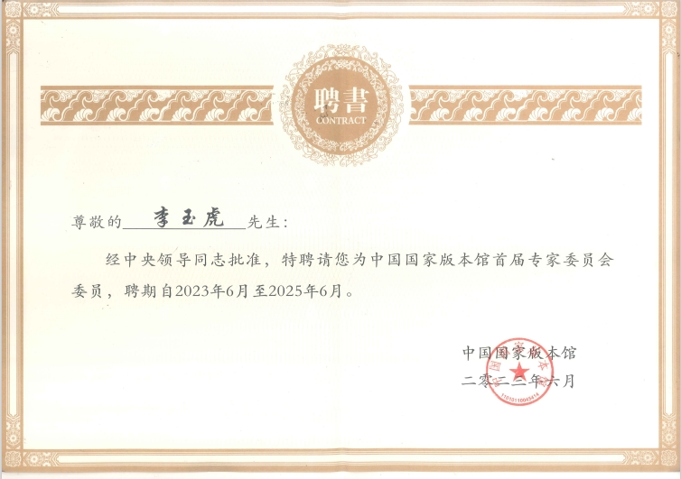2023年6月30日,中国国家版本馆在北京中央总馆(文瀚阁)举行专家委员会成立仪式。会上,中国国家版本馆馆长刘成勇宣读聘任决定,聘请李致忠、范迪安等37位专家组成中国国家版本馆首届专家委员会,我院历史文化遗产保护教育部工程研究中心主任李玉虎教授受聘为首届专家委员会委员。